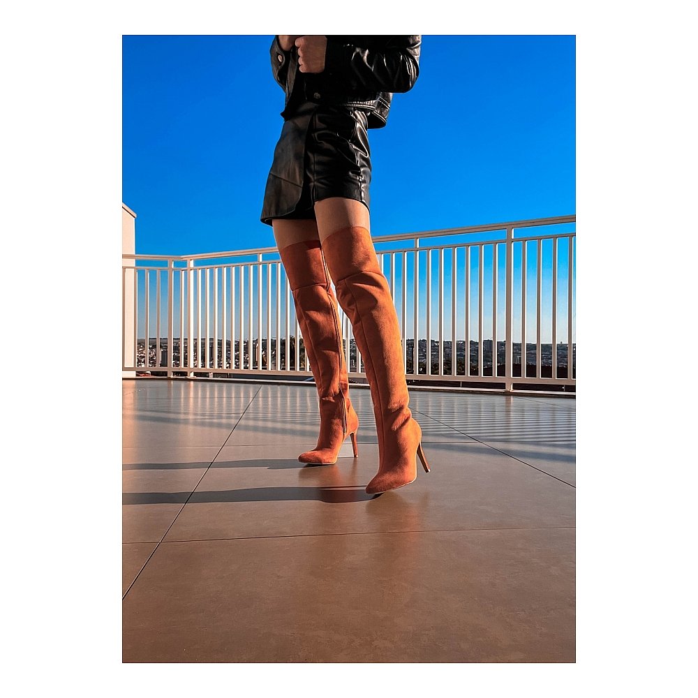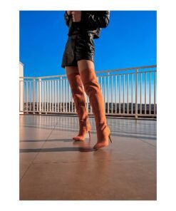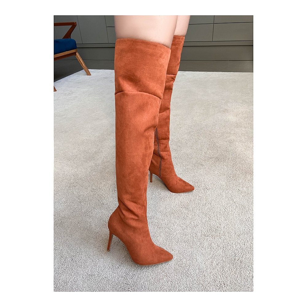Salto: 9 cm de Altura e Revestido em Camurça na cor Caramelo;